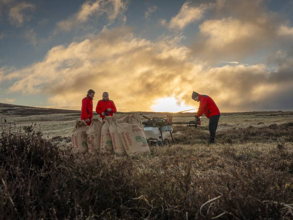 Provides a zero-impact route for restoring wet and unstable ground by aerially broadcasting Sphagnum fragments and specialist seeds. This eliminates the risk of carbon release from crushed peat and protects sensitive mosses.